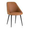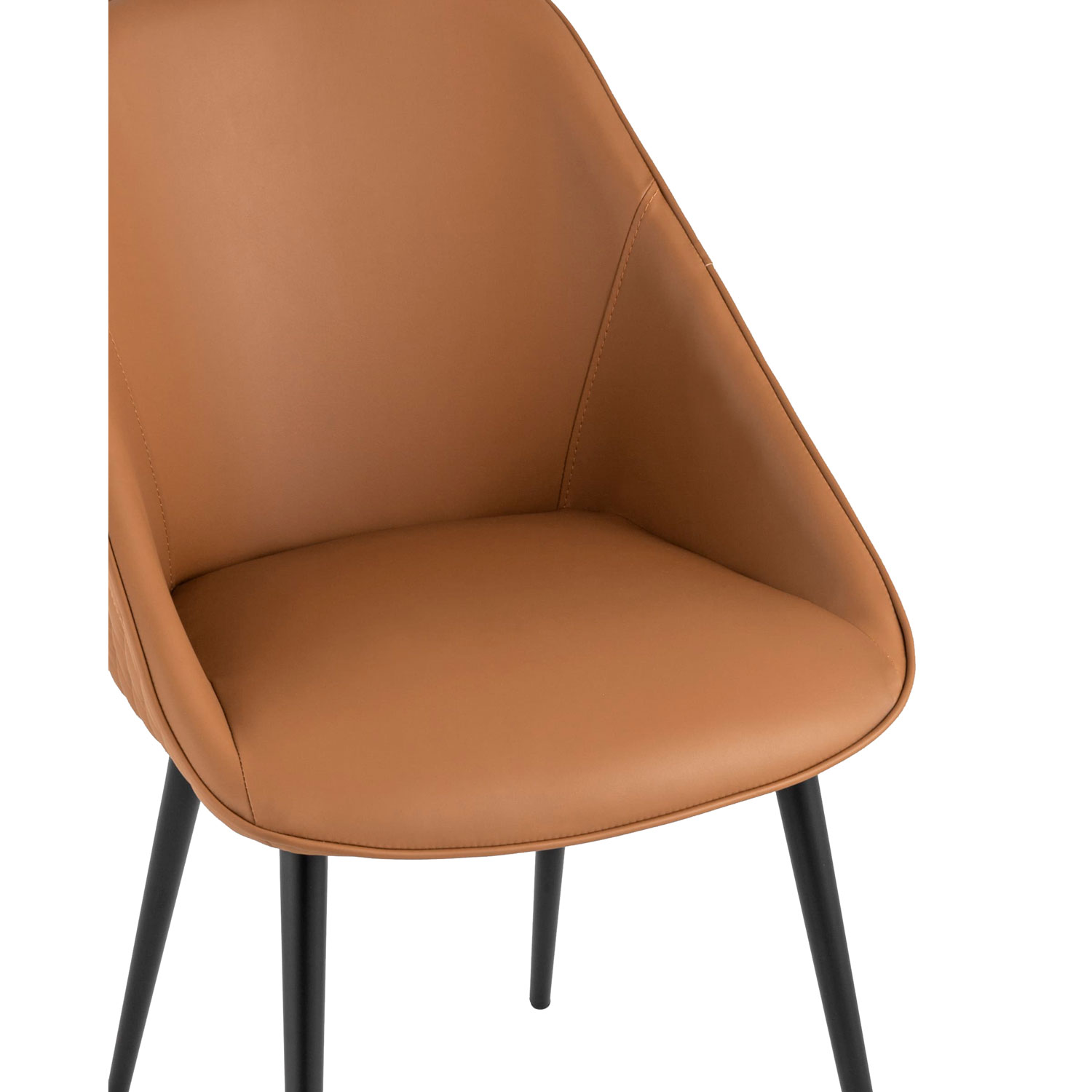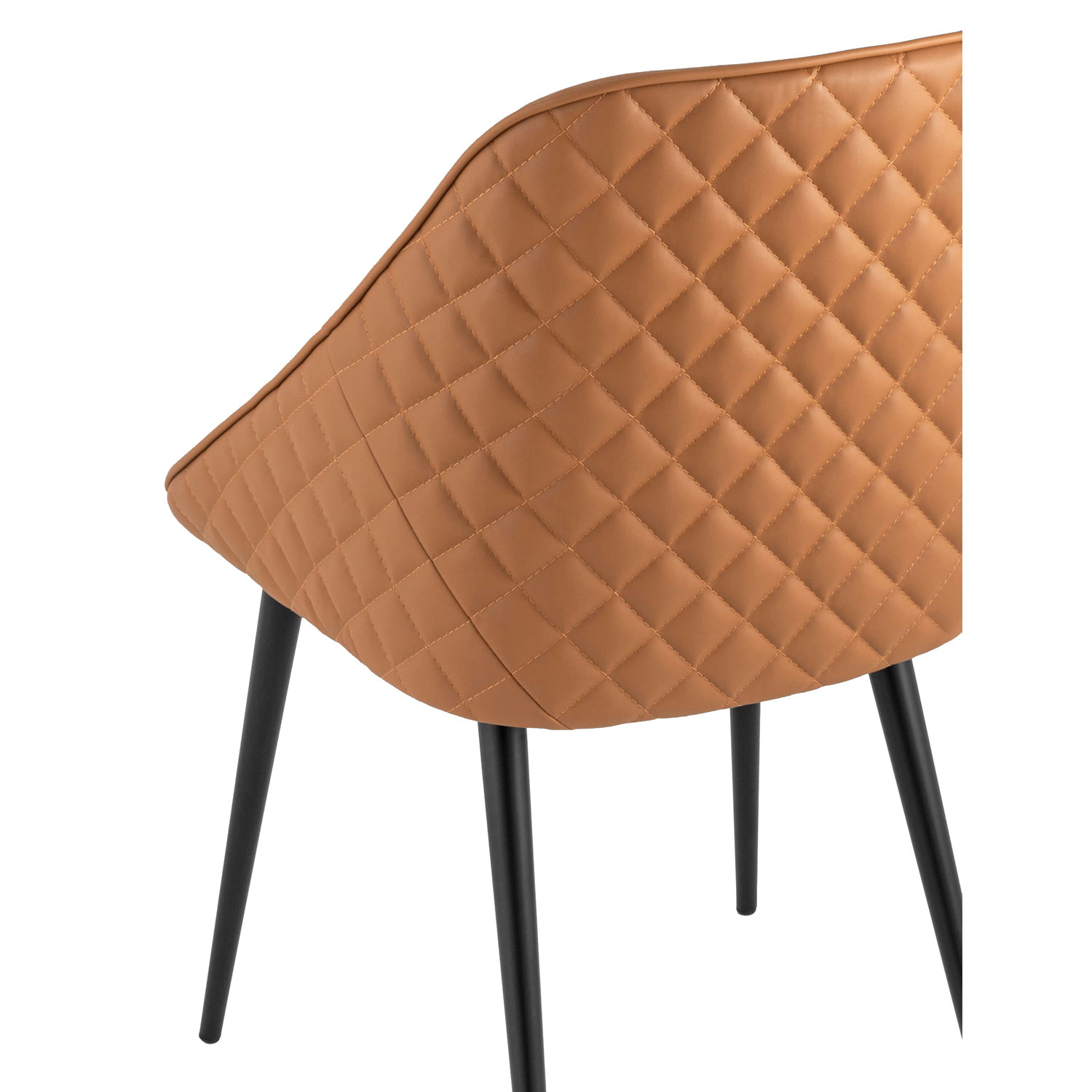 Обивка стула выполнена из прочной износостойкой экокожи. Такой материал не боится влаги, прост в уходе и быстро восстанавливает первоначальную форму. Ножки изготовлены из металла, которые покрыты порошковой краской в черном цвете. Закругленная эргономичная спинка обеспечивает максимальный комфорт. Внешняя сторона спинки отдекорирована ромбовидной строчкой. На ножках предусмотрены специальные подпятники, которые предотвращают скольжение и не царапают напольное покрытие.